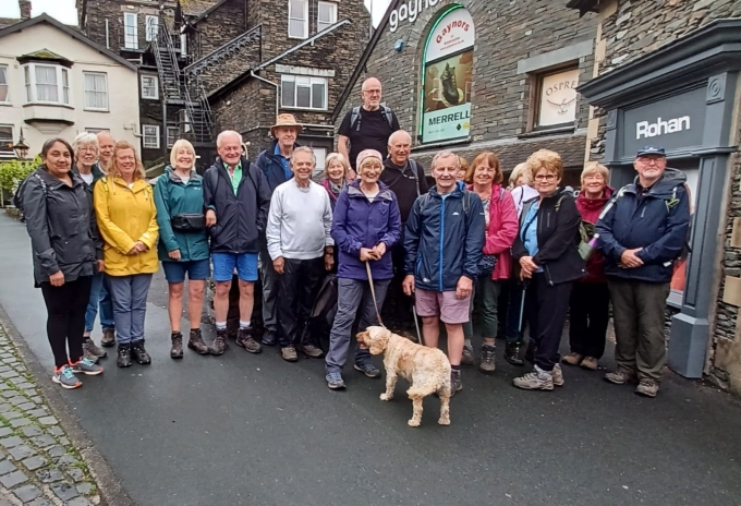 Cath and John Freeman arranged the weekend away in Ambleside for June 28th - 30th 2024. In all about 25 members attended plus Bertie the dog, with 20 walkers and some members who did not walk the full distances. The main walk was The Coffin Trail from Ambleside to Grasmere and return but some members returned by the bus or ferry. Visits were made to Dove Cottage and Wordworth's grave. A group evening meal was at Sheila's Cottage in Ambleside and visits were also made to the Golden Rule pub in Ambleside.